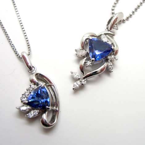 変形カットのタンザナイトペンダントシリーズで 2点新作をつくりました。